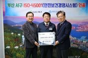 [경남도민뉴스=김채연 기자] 부산 서구는 국제 인증 심사기관인 KSR인증원으로부터 국제 표준 안전보건경영시스템(ISO45001) 인증을 획득해 지난 29일 오후 2시 30분 인증서 수여식을 가졌다. ISO45001은 국제표준화기구(ISO)와 국제노동기구(ILO)가 2018년에 제정한 안전보건경영시스템으로 산업재해 예방과 안전한 작업환경 조성을 위한 안전보건관리체계가 국제적 수준에 도달한 기관에 부여하는 국제인증이다. 서구는 외부 전문기관과 합동 위험성 평가를 기반으로 월별 점검 체계를 운영하고 공학적 개선 조치를 시행한 점, 연간 종합계획에 따른 성과측정 및 모니터링 등으로 ISO에서 요구하는 P-D-C-A 기반 선순환 구조가 안정적으로 운영되고 있는 점 등을 인정받았다. 서구는 그동안 근로자와 시민 모두의 안전을 최우선 가치로 삼고 안전보건관리체계 구축을 위해 매뉴얼 제정, 현장 작업환경 점검, 위험성 평가, 내부 심사 등 안전 보건 관리 전 과정을 단계적으로 점검해 현장의 안전관리 수준을 대폭 향상시키며 인증 심사에 대비해 왔다. 공한수 구청장은 “ISO45001 인증은 법적 요구 수준을 충족하