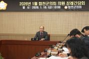 [경남도민뉴스=김춘호 기자] 합천군의회는 지난 16일, 합천군의회 간담회장에서 병오년 새해 첫 번째 합천군의회 의원 정례간담회를 개최했다고 전했다. 군의원 및 국장· 소장 · 담당관과 관계 부서장 등 20여명이 참석한 이 날 간담회에서는 통합돌봄 TF 구성·운영, 2026년 열린 관광지 조성사업 공모사업 선정 등 향후 주요 군정 추진현황에 관한 부서장의 보고와 함께 제296회 합천군의회 임시회 운영과 2025 회계연도 세입세출결산 검사위원 선임을 위한 협의 등을 논의했다고 관계자는 밝혔다. 이날 정례간담회에서 정봉훈 의장은 “전 의원과 공직자께서는 병오년 새해, 군민을 위한 의정과 군정 실현을 위해 ‘2026년도 군민과의 대화’의 업무추진에 만전을 기하여, 군민이 더욱 살기 좋은 합천군으로 이끌어 주실 것을 당부한다.”고 전했다. 한편 합천군의회는 2025회계연도 세입세출예산 결산검사위원의 선임과 각종 조례안 동의안 등의 심의 · 의결 등을 위하여 오는 2월 5일부터 2월 10일까지 6일간의 일정으로 제296회 합천군의회 임시회를 개회할 예정이다.