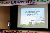 [경남도민뉴스=김춘호 기자] 합천군은 17일 합천군 종합사회복지관에서 ‘감사사례로 배우는 청렴교육’을 개최했다. 이번 교육은 공직자들의 청렴의식을 제고하고, 이해충돌방지와 공정한 업무 수행을 위한 실천 역량을 강화하기 위해 마련됐다. 교육에는 감사원 감사교육원 김종혁 감사관이 강사로 초청되어, 실제 감사사례를 중심으로 청탁금지법, 이해충돌방지법 등 청렴 관련 주요 내용과 공직자가 직무수행 과정에서 유의해야 할 사례들을 알기 쉽게 설명했다. 특히 이번 교육에는 부서 간 칸막이로 인해 발생할 수 있는 부패 취약성과 비효율에 대해서도 함께 짚어보며, 협업과 소통을 통한 청렴한 조직문화 확립의 필요성을 강조했다. 김윤철 합천군수는 “청렴은 행정 신뢰의 기본”이라며, “앞으로도 다양한 청렴 교육을 실시하여 직원들의 청렴 의식을 제고하고 군정의 신뢰를 높이는데 기여할 수 있도록 하겠다”고 말했다.