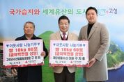 [경남도민뉴스=김태수 기자] 고성군 수산업협동조합 구언회 조합장과 제2비룡수산 대표 구자홍은 12월 26일 고성군을 방문하여 관내 경로당 지원을 위한 이웃사랑 나눔기부 쌀(10kg 120포) 400만 원 상당을 기탁하여 주위에 훈훈함을 선사했다. 두 분은 부자지간으로 매년 이웃사랑 실천 기부로 선한 영향력 확대에 노력하여 오고 있다. 구언회 고성군수협 조합장은 “다가오는 연말을 맞아 아들과 함께 관내 경로당의 어르신들이 따뜻한 겨울을 보내는 데 도움을 줄 수 있도록 행복한 마음으로 나눔을 하게 되어 기쁘다”라며, “어르신들의 소중한 한 끼를 제공하는데 뜻깊게 사용되기를 바란다”라고 전했다. 정영랑 주민생활과장은 “고성군수협 조합장과 아들이 함께 이웃사랑과 지역사회에 대한 관심으로 이웃사랑 실천에 동참해 주셔서 깊이 감사드린다”라며, “기탁된 쌀은 관내 경로당 어르신들에게 실질적인 도움을 줄 수 있도록 신속하게 전달하겠다”라고 말했다. 이날 기탁된 쌀은 경남사회복지공동모금회를 통해 관내 경로당에 전달될 예정이다.