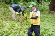 [경남도민뉴스=류종길 기자] 진교훈 서울 강서구청장이 8일 강서습지생태공원 일대에서 환경 단체 등과 함께 생태계 교란 유해식물 제거 활동을 펼쳤다. 이날 행사는 9월 6일 자원순환의 날을 기념해 열렸다. 진 구청장을 비롯해 강서양천환경운동연합, 한국환경공단 수도권서부환경본부, 코오롱인더스트리, 서울에너지공사, 탄소중립전문봉사단 등 100여 명이 참여했다. 환경 보호 활동에 앞서 유해식물 종류 및 제거 요령, 작업 안전교육 등이 진행됐다. 참가자들은 사전 교육을 받은 뒤 각자의 구역으로 흩어져 생태계 교란종인 가시박과 환삼덩굴 제거활동을 펼쳤다. 습지를 뒤덮은 유해식물을 낫으로 베고 갈퀴로 긁어내 한곳으로 모았다. 나무를 타고 높이 올라간 덩굴의 밑줄기 부분을 자르고 손으로 직접 뜯어내며 일일이 제거했다. 진 구청장도 장화, 목장갑, 낫, 노란 봉사조끼로 작업 채비를 갖춘 채 1시간가량 현장을 누비며 구슬땀을 흘렸다. 진교훈 구청장은 “강서습지생태공원 일대를 뒤덮은 유해식물로 걱정이 컸는데 말끔히 치워진 모습을 보니 힘든 줄도 모르겠다”며 “덥고 습한 날씨에도 환경 보호 활동