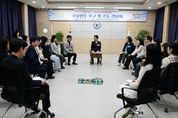 [경남도민뉴스=박만수 기자] 충청북도진천교육지원청은 9일, 진천교육지원청 온누리홀에서 윤건영 충청북도교육감과 진천교육지원청 7∼9급 일반직 공무원 20여 명이 참석한 가운데 2026년 주요업무 보고 및 MZ세대 공감 소통 간담회를 개최했다고 밝혔다. 이번 행사는 올해 충북교육의 핵심 가치인 ‘실용’과 ‘포용’을 현장에서 구체적으로 구현하기 위해 마련됐으며, “교육감과 MZ세대, 진솔톡톡(진천교육지원청 솔직 토크토크)”이라는 주제로 진행됐다. 2026년 진천교육지원청 주요업무 보고에 이어 진행된 이번 세션은, 저연차 공무원들이 던지는 가감 없는 질문에 교육감이 즉석에서 답하는 ‘쌍방향 소통’ 방식으로 운영되어 큰 호응을 얻었다. 소통 간담회 현장은 MZ세대 주무관들이 현장에서 느낀 생생한 경험과 아이디어를 쏟아내며 활기찬 토론의 장으로 변모했다. 참석자들은 교육 정책에 대한 질문으로 교육감과의 심리적 거리를 좁히는 한편, 현장의 변화를 이끌 실질적인 개선책을 제안하며 목소리를 높였다. 특히, 충북교육의 6대 핵심 정책을 각자의 일상과 연결해 공유하는 사전 세션을 통해, 정책이 먼 이야기가 아닌 우리 모두의 고민임을 확인하며