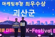 [경남도민뉴스=박만수 기자] 충북 괴산군은 지난 17일부터 사흘간 수원컨벤션센터에서 열린 ‘제6회 대한민국 대표 축제 박람회’에서 마케팅 부문 최우수상을 받았다고 20일 밝혔다. 대한민국 대표 축제 박람회는 전국 자치단체의 핵심 축제를 한자리에서 소개하는 전문 행사다. 군은 이번 박람회에 홍보관을 운영해 내달 막을 올리는 ‘빨간맛 페스티벌’과 고추축제, 김장축제의 매력을 전국에 알렸다. 특히, 충청북도 최우수 축제로 선정된 괴산김장축제가 관람객의 관심을 끌었다. 군은 김장에 빠질 수 없는 괴산 절임배추와 고추의 전국적 인지도를 강조하며 지역 농특산물의 우수성을 부각시켰다. 홍보관은 풍성한 경품과 참여형 이벤트를 접목해 관람객의 눈길을 사로잡았다. 대형 에어볼 게임과 추억의 뽑기, 고추 사탕 시식 코너를 운영하며 현장 분위기를 고조시켰다. 참여자에게는 고춧가루와 잡곡, 차량용 티슈, 지역 농특산물을 건네며 괴산의 넉넉한 인심과 특산물의 우수성을 알렸다. 군 관계자는 “괴산이 자랑하는 대표 축제들을 전국에 알릴 수 있어 무척 기쁘다”라며 “다가오는 빨