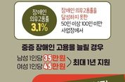 [경남도민뉴스=백형찬 기자] 1. 장애인 고용개선 장려금(*신설) - 장애인 의무고용률 3.1% 장애인 의무고용률을 달성하지 못한 50인 이상 100인 미만 사업장에서 중증 장애인 고용을 늘릴 경우 · 남성 1인당 35만 원, 여성 1인당 45만 원 → 최대 1년 지원 2. 청년일자리도약장려금 - 취업애로청년 등을 정규직으로 채용한 기업에게 1년 간 최대 720만 원 - 비수도권 기업에 정규직으로 취업한 청년에게 2년 간 최대 720만 원 3. 국민취업지원제도 - 구직촉진수당 인상 (Before) 월 50만 원 → (After) 월 60만 원 : 최대 6개월 지원 4. 일손부족 일자리 동행 인센티브 중장년 훈련·일경험을 수료한 50대 이상 중장년이 제조업·운수창고업에 취업하면 → 취업 후 6·12개월 근속 시 최대 360만 원 지원 ※ 시행 7월 1일