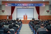 [경남도민뉴스=변정형 기자] 사천시는 2일 오전 10시 시청 대강당에서 박동식 사천시장을 비롯해 김제홍 부시장, 국·소장 및 전 직원이 참석한 가운데 2026년 병오년 시무식을 개최했다. 이날 시무식은 시정 홍보영상 시청, 유공 공무원 표창 수여, 신년사 순으로 진행됐으며, 공식 행사에 앞서 2025년 혁신주니어보드 최우수팀의 이지연 주무관이 ‘MZ의 시선에서, 소소하고 확실한 혁신’을 주제로 조직문화와 일하는 방식 개선에 대한 아이디어를 제시해 시무식 분위기에 변화를 더했다. 특히, ▲글로벌 우주항공복합도시 도약 ▲머무는 해양·문화 관광도시 완성 ▲민생경제 회복 및 지역상권 보호 ▲교통·정주환경 개선과 시민 안전 강화 ▲아이부터 어르신까지 행복한 복지도시 조성 등 올해 시정 운영의 5대 중점 과제를 제시했다. 유공 공무원 표창 수여식에서는 국무총리 표창(박민경, 박현아, 배현기, 김미경)을 비롯해 행정안전부장관 표창(강영욱,하동훈), 보건복지부장관 표창(유재희) 경상남도지사 표창(조인영, 이현진, 강선미, 박예슬, 최재형, 김수지) 등 총 13명의 직원이 성실한 공직 수행의 공로를 인정받아 수상의 영예를 안았