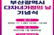 [경남도민뉴스=신석주 기자] 부산시는 내일(11월 1일) '부산시 다자녀가정의 날'을 맞아 오후 2시부터 4시까지 시청 1층 대회의실에서 '제18회 다자녀가정의 날 기념행사'를 개최한다고 밝혔다. 11월 1일은 다자녀가정 우대 문화 확산과 출산‧양육 친화적 사회 분위기 조성을 위해 부산시가 정한 다자녀가정의 날이다. 지난 2008년 지정된 다자녀가정의 날은 올해로 18회째를 맞이한다. 이날 행사는 ▲다자녀가정의 날 기념 포상 ▲다재다능 다자녀가정 경연대회 ▲어린이 달력 그림 공모전 시상 및 전시 등이 진행될 예정이다. ‘다자녀가정의 날 기념 포상’은 모범 다자녀가정 부문, 출산친화기업 부문, 유공 공무원 부문 등 16점이 수여된다. ▲‘모범 다자녀가정 부문’에는 화목한 가정을 이루고 지역사회와 이웃을 위해 봉사한 부산지역 다자녀가정 12가정이 선정됐다. ▲‘출산친화기업 부문’에는 에스비선보㈜(대표 최금식)와 ㈜성진푸드(대표 주현수), ▲‘유공 공무원 부문’에는 사하구와 연제구의 행정복지센터에서 다자녀가정 업무를 담당하는 사회복지공무원 2명이 선정됐다. ‘다재다