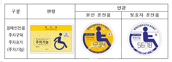 (창원/심지윤 기자) = 경남도에서는 지난 1~2월 2달간 장애인 자동차 주차가능 표지를 집중교체했다고 밝혔다. 기존 사각형의 장애인 자동차 주차가능 표지를 원형 모양의 노란색(본인운전용)과 흰색(보호자운전용)으로 구분하여 새롭게 교체했다. 새로운 표지는 기존 사각형의 표지와 직관적인 구분이 쉽도록 휠체어를 형상화해 원형으로 변경했다. 도는 그 간 위·변조 등 음성적으로 사용되던 주차표지 사용 차단에 도움이 될 것으로 기대하고 있다. 이와 함께 비닐 재질의 표지 코팅지에 정부상징문양의 홀로그램 표식을 도입해 위·변조도 방지한다. 기존 사용자들은 8월까지는 홍보·계도기간으로 기존 표지를 병행 사용할 수 있다. 표지 교체도 지속해 나갈 예정이다. 하지만 올해 9월부터는 새로운 표지가 전면 적용됨에 따라 기존 사각형의 주차가능 표지는 사용할 수 없다. 기존 표지를 사용해 장애인 주차구역에 주차 시 10만원의 과태료가 부과된다. 이에 도는 주차가능 대상자 3700여 명에게 장애인주차표지 갱신 안내문을 발송하고 중점 홍보해 조기 주차표지가 갱신될 수 있도록 추진한다. 오는 8월 31일까지는 불법주차 부당 사용에 대한 단속을