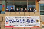 [경남도민뉴스] (사)대한한돈협회 함양군지부는 11월 25일 오후 함양군농업기술센터 체류형농업창업지원센터에서 관내 독거노인 480명에게 한돈 나눔을 비대면으로 전달하였다. 이번 나눔행사는 우리 돼지고기 소비촉진과 관내 이웃들을 돕기 위하여 마련되었으며, 코로나19 장기화로 어려움을 격고 있는 어르신들에게 따뜻한 마음을 전달하여 주변 이웃들에게 따뜻한 온정을 나눌 수 있는 자리가 됐다. 김기환 대한한돈협회 함양군지부장은 “희망 나눔을을 할 수 있게 되어 매우 기쁘게 생각하며 추후에도 어려운 이웃이나 도움이 필요로 하는 군민들을 위해 앞으로도 지속적인 나눔으로 상생하는 협회가 되겠다.”고 말했다.