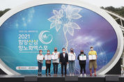 [경남도민뉴스] 2021 함양산삼항노화엑스포의 성공 개최를 응원하는 2021년 재4회 경남여성한마음대회가 9월 15일 오전 10시 30분 함양문화예술회관 소공연장에서 개최되었다. 경상남도 여성단체협의회장(회장 이성자) 주관 ‘평등을! 일상으로!’를 주제로 열린 이날 행사는 경남지역 여성의 선도적 역할다짐과 여성리더 및 여성단체의 역량과 결속력을 강화시키는 것은 물론 2021 함양산삼 항노화엑스포의 성공적인 개최를 염원하기 위해 마련되었다. 코로나19 확산방지를 위해 방역수칙을 철저하게 준수한 가운데 서춘수 함양군수를 비롯해 황태진 함양군의회 의장, 한미영 경상남도 여성가족정책과장, 이종엽 경상남도 여성특별보좌관 등 내빈과 박순연 한국자유총연맹경남여성협회 창원회장 등 13개 회원단체장, 18개 시·군 여성단체협의회장 등 40여명이 참석했다. 엑스포 개최지인 함양군에서 열린 이번 행사는 경상남도와 시·군 여성단체협의회 회원 간 소통과 교류, 화합을 다지는 장으로서 차세대 여성리더에 대한 유공자 표창, 양성평등 문화 확산을 위한 퍼포먼스, 한마음 체육대회를 대신하여 엑스포 행사관람 순으로 이어졌다. 이날 행사에 참석한 서춘수