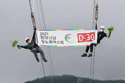 [경남도민뉴스] 2021함양산삼항노화엑스포 D-30일을 앞둔 11일 경남 함양군 병곡면 대봉산휴양밸리에서 안전요원들이 짚라인을 타며 퍼포먼스를 진행하고 있다. 2021함양산삼항노화엑스포는 상림공원 을 제1행사장, 대봉산휴양밸리는 제2행사장으로 ‘천년의 산삼, 생명연장의 꿈’이라는 주제로 다음달 10일부터 10월 10일까지 열린다.