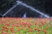 [경남도민뉴스] 폭염경보가 발효중인 5일 오후 경남 함양군 상림공원 백일홍꽃단지에서 스프링클러가 물을 뿌리며 더위를 식하고 있다.
