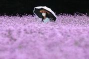 [경남도민뉴스] 폭염주의보가 내려진 28일 오후 경남 함양군 상림공원에 조성한 꽃밭에서 보라색 버들마편초가 만개해 시민들의 눈길을 끌고 있다.