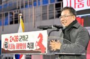 [경남도민뉴스=오창경 기자] 대구광역시 군위군은 지난 1일 오전 7시 군위종합운동장에서 군위문화관광재단 주최·주관으로 '2026 군위군 복나눔 해맞이 축제'를 성황리에 개최했다. 새해 첫날 이른 새벽부터 군민과 방문객 등 약 1,500여 명이 운집해 새해의 첫 순간을 함께했다. 영하권의 매서운 추위에도 행사장을 가득 메운 인파는 새해 첫 해가 떠오르는 순간 다 함께 소원을 외치며 환호와 박수로 축제의 열기를 한껏 끌어올렸다. 이어 다가족 이벤트 1등의 영광은 구미시에서 방문한 7인 가족에게 돌아갔으며, 한우세트가 전달되는 순간 행사장은 다시 한 번 뜨거운 박수와 환호로 가득 찼다. 특히 지역 봉사단체들이 정성껏 준비한 떡국과 대추차, 어묵 등 나눔 행사는 시작과 동시에 긴 줄이 이어질 만큼 큰 호응을 얻었다. 새해 첫날, 음식을 나누며 서로 안부를 묻는 모습은 ‘복나눔 축제’의 의미를 더욱 깊이 새겼다. 김진열 군위군수는 “병오년 새해 첫날, 많은 분들과 함께 첫 해를 바라보며 복을 나눌 수 있어 뜻깊다.”며, “오늘 맑고 깨끗하게 떠오른 해처럼, 2026년은 장애물 없이