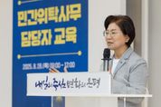 [경남도민뉴스=윤장희 기자] 서울 은평구는 지난 28일 구청 은평홀에서 민간위탁사무 담당자 140여 명을 대상으로 ‘역량강화 교육’을 진행했다고 밝혔다. 이번 교육은 민간위탁사무 현장의 안정성을 강화하고 위탁사무 담당자의 역량을 높이기 위해 마련됐다. 1부 중대재해처벌법 등 안전보건 교육에서는 현장에서 발생할 수 있는 다양한 위험요소와 예방 방법을 다뤘다. 2부 사업 부서와 수탁기관 간 원활한 협력을 위한 소통 강화 교육에서는 더 전문적이고 실무적인 내용으로 진행됐다. 안전보건교육에 참여한 한 수탁기관 종사자는 “현장에서 놓치기 쉬운 안전 수칙을 다시 확인할 수 있어 유익했다”고 말했다. 소통교육에 참여한 사업부서 담당자는 “기관 간 입장 차이를 이해하고 협력할 방법을 고민할 수 있는 좋은 기회였다”라고 밝혔다. 김미경 은평구청장은 “아무리 강조해도 지나치지 않은 것이 바로 ‘안전’인데, ‘나의 안전’이 곧 ‘우리 모두의 안전’이라는 마음가짐으로 현장에서 건강과 안전을 최우선으로 지켜 주시길 당부한다”며 “이번 교육이 안전하고 신뢰받는 현장을 만드는 데 든든한 밑거름이 되기를 바란다”고