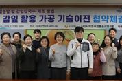 [경남도민뉴스=이돈휘 기자] 경상북도농업기술원은 감잎의 부가가치를 높이고 이를 지역 특산물로 개발하기 위해 7일 상주감연구소에서 ‘감잎분말 및 감잎칼국수 제조 기술’ 이전 협약을 체결했다. 이번 기술이전은 지역 특산물인 감잎을 활용한 새로운 소득 창출 방안을 마련하고, 상주 전통음식 문화를 기반으로 감잎의 고유한 특징을 살린 상품을 지역업체에서 활용하기 위해 추진했다. 개발 기술은 상주 지역의 ‘시의전서전통음식연구회’(감잎분말 생산)와 지역업체‘옥배네 국시’(감잎칼국수 판매)에 3년간 무상 이전했다. 이번에 이전되는 기술은 감잎의 새로운 가치 창출을 위해 감잎분말 제조와 이를 활용한 감잎칼국수 제조 방법으로 감잎의 독특한 풍미와 건강 기능성을 살려 소비자들의 관심을 끌 것으로 기대된다. 감잎은 새순이 돋는 5~6월과 여름 도장지(웃자람가지) 잎인 7~8월에 수확되며, 세척 후 동결건조와 분쇄를 통해 요리와 음료용으로 사용할 수 있는 고운 분말로 가공된다. 감잎분말은 전통 식재료와의 조화는 물론 현대적인 요리에도 활용 가능한데, 특히 이번 기술을 통해 만들어진 감잎분말과 밀가루의 반죽으로