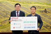 [경남도민뉴스=이돈휘 기자] 경주전문장례식장은 2024년 12월 24일 경주시청을 방문해 희망2025 나눔캠페인 성금 2천만원을 기탁하며 지역사회에 따뜻한 나눔을 실천했다. 황성동에 위치한 경주전문장례식장은 오랜 경험과 노하우를 바탕으로 지역 내 장례문화를 선도하고 있다. 또한, 코로나19 마스크 지원과 다양한 지역 봉사활동 등을 통해 지역사회 발전과 나눔을 지속적으로 이어가고 있으며, 이번 캠페인 참여로 또 한 번 이웃 사랑을 실천했다. 최정호 대표는 “이번 성금이 어려운 이웃들에게 조금이라도 도움이 되길 바란다”며 “앞으로도 소외된 이웃들에게 희망을 전하고 더 나은 지역사회를 만들기 위해 꾸준히 노력하겠다”고 말했다. 주낙영 경주시장은 “어려운 시기에도 지역사회를 위해 성금을 기탁해 주신 최정호 대표님께 깊이 감사드린다”며 “전해주신 소중한 정성이 지역의 취약계층에게 따뜻한 위로와 희망이 될 수 있도록 경주시도 최선을 다하겠다”고 전했다. 이날 기탁된 성금은 경북사회복지공동모금회를 통해 경주지역의 취약계층을 돕는 데 사용될 예정이며, 희망2025 나눔캠페인은 오는 1월 말까지 진행된