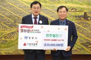 [경남도민뉴스=이돈휘 기자] 2024년 12월 20일, 경주월드(주)는 경주시청을 방문해 희망2025 나눔캠페인에 성금 2천만 원을 전달하며 지역사회를 위한 나눔 활동에 동참했다. 경주시 보덕동에 위치한 경주월드는 2002년 창립 이후 꾸준한 시설 투자로 관광객 유치에 기여해왔으며, 2025년 5월에는 창립 40주년을 기념해 새로운 어트랙션을 선보일 계획이다. 또한, 나눔의 가치를 실천하며 지역사회와의 상생을 위해 지난해 희망2024 나눔캠페인 성금 2천만 원 기탁에 이어 올해도 나눔 활동을 이어가고 있다. 정원기 대표는 “이번 성금이 지역사회와 나눔의 연결고리가 되길 바라며, 앞으로도 소외된 이웃들에게 실질적인 도움을 줄 수 있는 다양한 사회공헌활동을 펼치겠다”고 전했다. 주낙영 경주시장은 “지역사회를 위해 따뜻한 마음을 전해주신 경주월드에 감사드린다”며 “희망을 나누고 나눔 문화를 확산하기 위해 경주시도 함께 노력하겠다”고 말했다. 전달된 성금은 경북사회복지공동모금회를 통해 경주 지역 취약계층 지원에 사용될 예정이며, 희망2025 나눔캠페인은 내년 1월 말까지 진행된다.