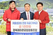 [경남도민뉴스=이돈휘 기자] 경북레미콘공업협동조합은 12일 경북도청을 방문해 저출생과의 전쟁 자금 1,000만원을 전달했다. 이날 전달식에는 오주권 이사장을 대신해 박규탁 의원이 참석해 성금을 전달했다. 경북레미콘공업협동조합은 레미콘공업의 건전한 발전과 조합원 상호 간의 복리증진을 도모하고 협동사업을 수행하기 위해 설립됐으며, 도내 142개 회원사로 두고 있다. 성금 전달식에 참석한 박규탁의원은 “저출생과의 전쟁을 추진하고 있는 경상북도에 조금이나마 도움이 되고, 내년에는 더 분발하여 도민의 피부에 와닿는 현장감 있는 정책을 펼치길 바란다”고 말했다. 이에 이철우 경상북도지사는 “내년에는 올해 정책을 분석하여 미흡한 부분을 보완하고, 내실 있게 추진해 국가정책으로 안착할 수 있도록 최선을 다하겠다”고 말했다.