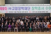 [경남도민뉴스=이돈휘 기자] (재)고암장학재단은 지난 7일 경주시청 알천홀에서 2024년 장학생으로 선발된 중‧고등학생들을 대상으로 제9회 장학증서 수여식을 가졌다. 이날 장학증서 수여식에는 조덕수 고암장학재단 이사장 및 재단 임원을 비롯해 임활 시의회 부의장, 경주시 관계자 등 100여 명이 참석해 자리를 빛냈다. 올해 선발된 장학생은 성적우수 20명, 취약계층 25명, 예체능 특기생 7명 등 총 52명이다. 이들에게는 1인당 100만원씩 총 5200만원의 장학금이 지급됐다. 조덕수 장학재단 이사장은 “고암장학생 여러분들이 지역사회와 국가발전에 기여할 수 있는 인재로 성장할 수 있도록 노력해 주길 바란다”라며 “나아가 사회로부터 받은 도움에 감사할 줄 알고 더불어 잘사는 사회를 만드는 데 앞장서 주시기를 당부한다”고 전했다. 시 관계자는 “지역의 우수한 학생들에게 꿈과 희망을 심어주기 위해 지속적으로 장학사업을 펼쳐온 고암장학재단의 헌신적인 노력에 경의를 표한다”고 말했다. 한편 (재)고암장학재단은 조덕수 이사장이 지난 2015년 재단 설립 후 올해까지 성적우수 202명, 취약계층 1