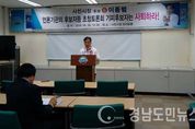 (사천/이형섭 기자) = 무소속 이종범 사천시장 후보는 28일 오전 10시30분 시청브리핑룸에서 기자회견을 열고 후보 정책 토론회를 파기한 '후보는 사퇴하라'고 목청을 높혔다. 이 후보는 "차상돈 후보는 자신의 부족한 시정경험을 감추기 위해 시의회 부의장을 지낸 무소속 시장후보 기호 6번 이종범 후보를 송도근 후보와 같이 3자 정책 토론을 기피함으로서 자기 자신을 감출수 있다고 생각하는 것 같은 느낌이었다"며 "차상돈 시장후보는 자신의 당선을 목적으로 송도근 후보와 담합이 의심되는 토론 기피는 불공정 선거를 하는거나 다름없다"고 지적했다. 그러면서 이 후보는 "사천시민의 심판을 정정당당하게 심판 받고, 표로서 인정받아 시민을 위해 충성스럽게 일하는 것이 시장 당선자의 당당한 면모이고, 시장의 직무이다"며 "작은 이익에 자고우면하는 소아적 발상을 가진 시장후보들이 사천시를 위해 무엇을 할 수 있겠느냐"고 비판했다. 이 후보는 "당당하고 용기 있는 기호 6번 이종범 같은 시장후보를 시장으로 선출해 달라고 호소하며, 시정의 집행과정이 잘못됐다하여 시장 집무실 및 자택압