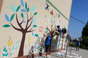 (사천/이형섭 기자) = KAI나눔봉사단은 지난 26일 사천시자원봉사센터와 연계하여 관내 대성초등학교에서 벽화그리기 봉사활동을 펼쳤다. ‘나눔에 반하다’라는 슬로건으로 다양한 지역사회 공헌활동을 펼쳐오고 있는 KAI나눔봉사단은 지난해부터 1년에 2회 지역초등학교를 선정하여 벽화그리기와 함께 학교 전체의 외관정비 및 수리 등의 봉사활동을 시행해 왔다. 이번 봉사활동은 KAI나눔봉사단 임직원 및 가족 110여명과 경상대학교 해피빌더스봉사단 40명이 함께 10개 팀으로 나뉘어 건물외벽 색칠, 대형 벽화 작업, 진입로 바닥 꾸미기, DIY 벤치 만들기 등 종류별, 구간별로 체계적으로 분담하여 작업을 진행했다. 오전 9시부터 진행된이번 봉사활동은 오후 5시가 가까워서야 마무리 됐는데, 봉사자들은 30도에 육박하는 더운 날씨와 생각보다 난이도 있는 작업에 지쳤음에도 불구하고 아담한 학교와 잘 어울리는 예쁜 색감의 벽화와 아이들에게 휴식공간이 되어줄 튼튼한 목재 벤치를 보며 뿌듯해 했다. KAI나눔봉사단 구관혁 팀장은 “소중한 주말을 할애해 참여해준 우리 임직원 및 가족들 정말 수고가 많았고, 특히 벽화의 초안을 그리고 각 팀의 작