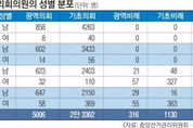 (사천/이형섭 기자) = 지방자치제가 되살아난 1991년 이후 지방선거에서 뽑힌 지방의회의원 대다수는 40~50대 고학력 남성이었다. 성비 불균형을 없애고자 여성할당제도 도입했지만, 효과는 미미했다. 지난 14일 권경득(전 한국지방자치학회장) 선문대 글로벌행정학과 교수팀이 작성한 ‘한국 지방의회의원의 사회적 배경에 관한 연구 '다양성 분석을 중심으로’에 따르면 지난 7번의 선거에서 선출된 지방의원 2만 9814명(광역의원 5322명·기초의원 2만 4492명) 중 여성은 2452명(8.2%)에 그쳤다. 1998년까지 선거마다 4000~5000명을 웃도는 당선자 중 여성은 100명도 되지 않았다. 비례대표제가 도입된 2002년부터 여성 당선자 수는 꾸준히 늘어나기 시작했다. 2002년 140명을 시작으로 2014년엔 845명까지 늘었다. 이는 비례대표제를 도입하면서 여성 공천 비율을 50% 이상으로 의무화했기 때문이다. 여기에 지역구 공천의 30% 이상을 여성으로 하도록 권장했다. 그러나 이런 대책으로 성비 불균형을 해소하긴 역부족이었다. 여성 할당 의무조항이 있는 비례대표는 전체 의석의 10%뿐이었고, 여전히 선출