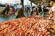 [경남도민뉴스=장강동 기자] 겨울철 최고의 수산물로 꼽히는 영덕대게가 5개월간의 금어기를 마치고 지난 3일 강구항 위판장에서 올해 처음으로 위판됐다. 이번 위판에는 근해 대게 자망어선 4척이 참여해 활발한 경매가 이뤄졌으며, 낙찰가는 마리당 최고가 16만 9,000원, 총판매액은 3억 498만 원을 기록했다. 영덕대게 조업은 매년 11월 초 근해에서 시작해서 12월 연안으로 확장돼 이듬해 5월까지 이어진다. 특히 겨울철 살이 단단하고 풍미가 깊은 ‘박달대게’의 출하가 본격화되면 관광객 유입과 지역경제 활성화가 더욱 기대된다. 이날 경매 현장을 찾은 김광열 영덕군수는 김성식 강구수협 조합장 등과 함께 어업인과 중매인, 그리고 강구대게거리 상인들을 격려하고 애로사항을 경청하는 등 현장의 목소리에 귀를 기울였다. 김성식 강구수협 조합장은 “포항-영덕 고속도로 개통이 예정되어 있고 동해안 철도망도 지속적으로 확충되고 있어 물류나 접근성이 한층 좋아지고 있다”며, “좋아진 교통 인프라만큼 올겨울 영덕대게가 많이 잡혀 어업인들의 소득이 늘어나고 지역 상권도 활성화되길 기대한다”라고 전했다. 김광열