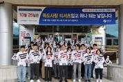 [경남도민뉴스=장강동 기자] 영양군은 10월 24일 오전 독도의 날을 기념해 군청사 입구에서 오도창 영양군수를 포함한 공직자 60여 명이 참석한 가운데 ‘독도 사랑 티셔츠 입기 운동’행사를 진행했다. 영양군의 공직자들부터 앞장서서 독도 사랑 티셔츠를 입고 근무하면서 독도의 날 의미를 되새기고, 온 국민 하나 되기 운동에 동참하는 모습을 보였다. 이날 행사는 지난 1900년 10월 25일 대한제국의 고종황제가 독도를 울릉도에 편입시키는 칙령 제41호를 반포한 역사적으로 뜻깊은 날을 기념하기 위해 직원들 모두 독도 사랑 티셔츠를 입고 태극기를 손에 들고 우리 땅 독도 지키기 운동에 앞장설 것을 다짐하는 계기가 됐다. 오도창 영양군수는 “독도의 날 행사를 통해 영양군민 모두가 독도에 대한 더 많은 관심과 애정을 가졌으면 한다.”라며 “‘독도 사랑 티셔츠 입기 운동’은 알고는 있지만 행동으로 실천하기 힘든 독도 사랑을 이번 기회를 통해 나타내며, 공직자부터 먼저 독도사랑에 앞장서는 모습을 보여줌으로써 우리 고유 영토의 소중함을 다시금 되새기는 순간이 됐길 바란다.”라고 말했다.