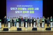 [경남도민뉴스=장강동 기자] 경북 울릉군여성단체협의회장(회장 박선옥)는 지난 14일 한마음회관 대공연장에서 남한권 울릉군수, 이상식 울릉군의회 의장을 비롯한 기관단체장 및 사회단체장 등 300여명이 참석한 가운데 2025년 양성평등주간 기념행사를 가졌다. 올해 울릉군여성단체협의회가 주최·주관하고 울릉군이 후원하는 양성평등주간 기념식은 “모두가 존중받는 성평등 사회 모두가 행복한 울릉”이라는 주제로 개최됐으며, 실질적인 양성평등 이념을 구현하고 그 의미를 널리 알리기 위해 매년 진행되고 있다. 행사내용은 각 단체회장 소개, 양성평등 유공자 시상, 개회식에 이어 모두가 행복한 양성평등문화 확산을 위해 결의문 낭독과 주제 퍼포먼스를 진행했으며, 양성평등 주제 강연에는 김재롱 씨가 출연하여 성평등 이야기를 쉽고 유쾌하게 풀어 시민들과 공감대를 나눴다. 이날 양성평등 문화확산에 이바지 한 유공자 표창에는 양성평등 유공자 표창(울릉군수상 박정미, 울릉군수상 홍경민, 군의회의장상 이현자), 양성평등 부부상(아이코리아울릉군지회 회장 최윤정, 권정식 부부)이 수여됐다. 박선옥 회장은 개회사에서 “양성평등은 모두가