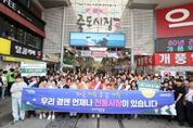 [경남도민뉴스=장강동 기자] 포항시는 추석 명절을 앞둔 30일 지역 유관기관 및 단체와 죽도시장을 찾아 명절 물가 동향을 점검하고 지역 경제에 활력을 불어넣기 위해 전통시장 장보기에 나섰다. 이날 행사에는 소상공인 단체, 사회적기업, 청년단체, 북부소방서, 포스코노조, IM뱅크, 농협, 이미용·외식업협회 등 1,000여 명이 참여해 포항사랑상품권과 온누리상품권으로 제수용품과 다양한 지역 농·축·수산물을 구입했다. 시는 이를 통해 민생경제 살리기에 힘을 보태며 소비 진작과 지역 상권 회복 효과를 극대화하겠다는 방침이다. 이강덕 포항시장은 “고물가와 소비심리 위축 속에서도 전통시장을 지켜온 상인 여러분께 감사드린다”며 “추석 기간 소비 쿠폰이 전통시장에서 활발히 사용돼 실질적인 도움이 되길 바란다”고 말했다. 또한 상인들과 오찬을 하며 현장의 애로사항을 청취하고 격려하는 한편, 가을철 화재 예방을 위한 상인들의 자율적 안전관리 노력을 당부했다. 특히 포스코노조는 이날 장보기 행사를 통해 500만 원 상당의 목욕용품 세트를 구입해 북구청에 기탁했으며, 이는 추석 연휴 전 북구 읍면동의 취약