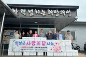 [경남도민뉴스=장강동 기자] 의성군은 (사)대한양계협회의성육계지부(지부장 이영숙)가 기부한 생닭 300마리를 관내 사회복지시설 6개소에 전달했다고 밝혔다. 이번 기부는 추석 명절을 맞아 사회취약계층에게 나눔과 희망을 전하기 위해 닭고기자조금관리위원회의 주선으로 마련됐다. 이영숙 의성육계지부장은 “회원들의 따뜻한 마음을 모아 마련한 이번 기부를 통하여 어려운 이웃들이 조금이나마 풍성한 명절을 보내길 바란다”고 전했다. 기부된 생닭은 25일 각 사회복지시설로 배분하여, 시설 사용자에게 조리해 제공될 예정이다. 김주수 의성군수는 “어려운 경제 여건 속에서도 따뜻한 마음을 나눠주신 의성육계지부의 정성에 감사드린다”며 “군은 앞으로도 민관이 함께하는 나눔 문화 확산에 최선을 다하겠다”고 말했다.