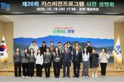 [경남도민뉴스=장광동 기자] 함양군은 지난 19일 오후 군청 대회의실에서 ‘제20회 키스비전 프로그램 사전설명회’를 개최했다고 밝혔다. 이날 사전설명회에는 최종 참가자로 선발된 학생 16명과 학부모가 참석한 가운데, 진병영 군수가 직접 학생들을 격려하며 글로벌 인재로의 도전을 응원했다. 또한, 키스그룹 홍보대사인 함양군의회 정광석 의원이 프로그램의 취지를 알리고, 학생들이 적극적인 자세로 프로그램에 임해달라고 당부했다. 이어서 키스비전 프로그램의 일정과 준비 사항에 대한 안내가 이뤄졌으며, 학생들은 미국 현지 학교 학생들을 대상으로 발표할 한국과 함양 소개 프레젠테이션을 직접 시연해 보는 시간도 가졌다. 학생들은 2026년 1월 21일부터 31일까지 미국 현지 학교 체험 및 탐방, 자체 워크숍 및 문화 체험 등 다양한 프로그램에 참여할 예정이며, 연수가 끝난 후 성과 보고회를 열어 프로그램 체험 수기를 공유할 계획이다. 키스비전 프로그램은 함양군 안의면 안심마을 출신으로 세계적인 미용 기업 미국 키스그룹을 이끄는 장용진 회장이 고향 후배들에게 글로벌 인재로 성장할 수 있는 경험과 동기부