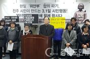 일본군 '위안부'피해 할머니 진주기림사업회, 6.15공동선언 실현 진주시민운동본부는 진주시청에서 기자회견을 열고 '한일 12.28 위안부 합의’즉각 파기와, 진주지역 위안부 역사를 기록하기 위한 '소녀상' 건립을 위해 힘을 모아갈 것임을 밝혔다. 이들은 지난 16일 열린 유엔 여성차별철폐위원회 정기심의에서 일본정부가 "‘위안부’ 동원은 조작된 것이고, 성노예 주장 역시 사실무근이며, ‘위안부’문제는 최종적으로 해결되었다고 주장했다”면서 “일본 정부가 이러한 주장의 근거로 제시하고 있는 것이 역설적이게도 바로 ‘12.28 위안부 합의’였다”고 설명했다. 이어 “박근혜 정부는 국가범죄를 부정, 은폐하려는 일본 정부의 2차 범죄에 가담할 것인지, 아니면 ‘12·28 위안부 합의’ 폐기를 선언하고 일본의 국가범죄를 추궁할 것인지 선택해야 한다”며 “만약 박근혜 정부가 이러한 선택을 회피한다면 일본정부의 범죄행위에 적극 가담하는 것이 될 것&rdquo