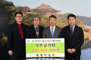 진주시 소재 자동차정비종합업체 대영기공사 (대표 김주방)에서 21일 진주시를 방문하여 진주시 좋은세상복지재단에 1,000만원을 기탁했다고 진주시가 밝혔다. 대영기공사 김주방 대표는 “좋은세상 복지재단이 지역의 저소득층과 복지사각지대 지원사업을 펼치는데 도움이 되기를 바란다“며 기탁소감을 밝혔다고 한다. 한편 대영기공사는 2012년 4월에도 좋은세상협의회에 300만원의 성금을 기탁하는 등 지역사회 나눔문화 확산에 앞장서고 있다.