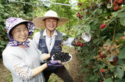 (산청/최광용 기자) = 26일 산청군 오부면의 한 농원에서 검붉게 익은 유기농 블랙베리 수확이 한창이다. 이 농원에서 생산되는 블랙베리는 당귀, 감초, 계피 등을 넣어 만든 한방영양제를 먹고 자란다. 산청군 직영 산엔청쇼핑몰에서 유기농·무농약 블랙베리를 3㎏ 3만5000원에서 5㎏ 6만원 정도에 구입할 수 있다. 블랙베리는 비타민C가 풍부하고 피로회복과 항산화효과가 있어 슈퍼 복분자라고도 불린다. 또 오디와 비슷하게 생긴 블랙베리는 산딸기와 식감이 비슷하고 새콤한 맛이 특징이다.