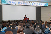 (산청/최광용 기자) = 산청군은 2일 허기도 산청군수의 충혼탑 및 위령탑 참배에 이어 군청 대회의실에서 새해 업무의 시작을 알리는 시무식을 가졌다. 이날 시무식은 500여 명의 공무원이 참석한 가운데 유공 직원 시상식과 허기도 군수의 신년사 순으로 진행됐다. 허기도 군수는 신년사를 통해 “올해는 그동안 이룩한 성과와 기반을 바탕으로 ‘시스템 산청’을 위해 계획한 사업들을 체계적으로 관리해 나갈 것”이라고 밝혔다. 또한 “군민이 더 행복하고 존경 받는 한해가 되도록 군민이 체감하는 행복산청을 만들어 나가자”고 당부했다.