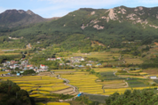 아침 최저기온이 10도 이하로 떨어지는 등 쌀쌀한 가을 날씨를 보인 13일 오후 산청군 차황면 황매산 다랭이논이 노랗게 물들어 가고 있다. 광역친환경단지로 지정된 산청 황매산 일대는 고품질 친환경 농산물의 산지로 유명하다.