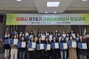 [경남도민뉴스=최미정 기자] 김해시는 지난 21일 제15기 자원순환해설사 수료식을 개최했다고 22일 밝혔다. 자원순환해설사 양성교육은 시민의 눈높이에 맞는 자원순환 교육과 홍보를 통해 생활 속 분리배출 실천을 확산하고, 탄소중립사회 실현에 기여하기 위해 운영되는 김해시의 대표적인 환경교육 프로그램이다. 양성교육은 지난 19일부터 수료식까지 ▲김해시 자원순환 정책 이해 ▲김해시 자원순환 해설사 이해 ▲탄소중립시대 자원순환의 가치와 중요성 ▲데이터로 읽는 변화 순으로 진행됐다. 2012년 시작한 교육은 올해 15번째로 총 446명의 수료생을 배출했다. 자원순환해설사는 학교와 마을, 각종 행사, 교육 현장에서 자원재활용 홍보·계도활동을 비롯해 찾아가는 분리배출교육, 다량배출사업장 점검, 투명페트병 별도 분리배출 홍보 등 클린도시 김해 조성을 위한 다양한 활동을 수행하게 된다. 이용규 자원순환과장은 “자원순환해설사는 시민과 행정을 잇는 중요한 연결고리”라며 “앞으로도 체계적인 교육과 지속적인 활동 지원으로 자원순환 실천문화가 지역사회 전반에 확산될 수 있도록 노력하겠다”고 말했다.