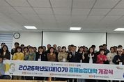 [경남도민뉴스=최미정 기자] 김해시는 지역 농업 경쟁력 강화와 미래 농업을 선도할 전문 인력 양성을 위해 2일 ‘2026학년도(제10기) 김해농업대학’을 개강했다. 이번 김해농업대학은 오는 10월 8일까지 총 34회, 160시간 과정으로 스마트농업 기술과 농업 경영 역량을 겸비한 전문 농업인 양성에 중점을 둔다. 교육 과정은 ▲스마트농업 귀농귀촌학과 ▲청년농업인학과 2개 학과로 각 학과별 20명씩 총 40명이 참여했다. 교육은 매주 화요일과 목요일 이론 교육과 현장 견학을 병행한 실습 중심으로 이뤄진다. 김해농업대학은 농업기술센터를 중심으로 운영되며, 스마트농업 귀농귀촌학과는 스마트팜 운영, 작물 재배기술, 병해충 관리 등 귀농 정착에 필요한 실무 교육을 제공한다. 청년농업인학과는 창농 비즈니스 전략, 온라인 마케팅, 브랜드 개발 등 청년 농업인의 창업 역량 강화를 목적으로 한다. 특히 변화하는 기후환경에 대응하기 위한 스마트농업 기술과 데이터 기반 농업 경영 교육을 강화하고 선도 농가, 연구시설 견학으로 현장 이해도를 높일 계획이다. 김해시는 이번 교육을 통해 농업인의