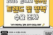 [경남도민뉴스=최미정 기자] 김해시청소년센터가 운영하는 김해시청소년참여위원회는 지역 청소년의 일상을 반영한 정책 발굴을 위해 ‘2026 김해시 청소년 트렌드 및 정책 수요조사’를 실시한다. 김해시청소년참여위원회는 '청소년기본법' 제5조의2에 따라 청소년이 정책 수립과정에 주체적으로 참여할 수 있도록 구성된 공식 참여기구로, 청소년의 의견을 정책에 반영하는 역할을 수행하고 있다. 이번 조사는 기존 통계자료를 기반으로 질문을 구성해 정책 활용도를 높였다. ‘2025년 김해시 청소년종합실태조사’, ‘청소년 통계’, ‘아동·청소년 삶의 질 보고서’를 반영하여 문항을 구성했으며, 2026년 현재 청소년들의 생활 변화와 수요를 구체적으로 파악하는 데 중점을 뒀다. 설문은 ▲일반사항 ▲일상 및 여가 ▲디지털·AI 활용 ▲고민 및 스트레스 ▲청소년 정책 및 인프라 수요 ▲내가 살고 싶은 도시, 김해 등 6개 분야 24개 문항으로 구성되며, 조사 결과는 청소년참여위원회 정책 제안 활동과 연계해 향후 청소년 정책 수립과 사업 기획의 기초자료로 활용될 예정이다. 강미선 김해시청소년센터장(아동청소년과장)