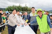 [경남도민뉴스=최민숙 기자] 성주군 수륜면 수성리 어울림마당(수성리 104)에서 10. 18.부터 19.까지 이틀간 열린 성주군 가을 대표축제 '2025 성주가야산 황금들녘 메뚜기축제'가 전국 각지의 관광객이 모이며 성황리에 종료됐다. 축제장 진입로에 늘어선 허수아비와 바람개비 행렬은 방문객들을 따스하게 맞이하고 축제장 입구에 펼쳐진 황금빛 들녘은 가을의 풍요로움을 아낌없이 선사한 축제였다. 축제 대표 프로그램인 친환경 농촌체험(메뚜기잡이, 고구마 캐기, 메기잡이, 사과낚시)과 온 가족이 함께하는 가을 운동회, 다양한 체험 부스와 공연은 방문객들에게 풍성한 즐길거리·볼거리를 제공했고, 축산물 무료시식 및 다양한 먹거리들로 방문객들의 입맛까지 사로잡았다는 평이다. 전년에 이어 올해도 무대와 개막식 행사를 없애는 대신 축제장을 방문한 관광객들과 함께 청정 수륜쌀로 만든 가래떡을 길게 뽑으며 모두의 행복과 안녕을 기원하는 ‘한마음 가래떡 뽑기’ 퍼포먼스를 펼쳐 축제장을 찾은 방문객들에게 색다른 재미를 선사했다. 올해는 그동안의 성과에 만족하지 않고 신규 프로그램과 체험을 개발하여 축제를 내실화했다는 점에