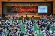 (함양/최병일) = 농촌지도자함양군연합회(회장 윤종승)가 주최한 2018 농촌지도자 한마음대회가 24일 오전 11시30분 고운체육관에서 역대회장, 각 읍·면회장, 회원 등 400여 명이 참석한 가운데 성황리에 개최됐다. 이날 행사에는 강현출 부군수, 황태진 군의회 의장을 비롯한 군의원, 김동권 경찰서장, 임재구 도의원, 김우식 NH농협군지부장, 박종천 함양산청축협조합장 등이 참석해 농촌지도자 회원들을 격려했다. 개회식에서는 농업 발전과 농촌지도자회 조직 활성화에 기여한 공로로 차주상 회원이 중앙회장상을, 임대섭 회원이 도회장상을 받았고, 군 농업소득 증대와 복지농촌 건설에 기여한 강명구, 노민상 회원 등 2명이 군수상을 수상했다. 오후에 시작된 회원 화합 한마당 행사에서는 윷놀이, 풍선터트리기, 제기차기, 고무신 던지고 받기 등 다채로운 행사로 농촌지도자 회원간 우애를 증진시키고 단체의 활력을 불어넣는 농업인 화합의 한마당을 연출했다. 또한 농촌지도자함양군연합회에서 (사)함양군장학회(이사장 서춘수 함양군수)에 장학금 100만원을 기탁하며 이날 행사를 더욱 뜻깊게 했다. 뒤이어 읍면별 노래자랑 및 장기자랑으로 그 동안 농사일로 고된 심신을 치유하