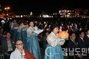 (함양/최병일) = 함양사암연합회(대표 도오스님·보림사 주지)와 함양불교연합신도회(회장 김종복)는 불기 2562년 부처님 오신 날 맞아 지난 11일 오후 6시30분 함양 상림공원 토요무대에서 봉축 점등 문화축제를 성황리에 개최했다. ‘지혜와 자비로 세상을 아름답게’라는 주제로 열린 이날 봉축 점등 문화축제에는 강현출 함양군수 권한대행과 유관기관단체장을 비롯하여 300여명의 불자들이 참석해 부처님의 탄생을 축하하고 세상의 어둠과 고통을 걷어내며 지혜와 자비가 충만한 새 세상을 기원했다. 이날 행사는 관내 동아리, 어린이합창단 등을 초청한 식전 공연으로 군민의 화합을 이끌어 낸 후 점등식을 가졌다. 이날 점등식을 시작으로 터미널 로터리에 설치된 봉축탑과 동문사거리를 기준으로 거리 곳곳에 설치된 거리연등이 오는 31일까지 함양을 환하게 비추게 된다. 점등식 후 법원스님(영원사 주지)의 집전으로 부처님께 공양을 올리는 의식인 육법공양, 삼귀의, 찬불가, 반야심경, 청법가, 법문, 발원문낭독, 사홍서원, 제등행렬 순으로 진행됐다. 법문은 사천시 구룡사의 철오 큰스님이 했다. 특히 행사의 마지막을 장식한 제등행렬은 상림공원에서 시작하