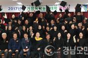 (거창/최병일) = 거창군(군수 양동인)은 13일 APC센터 2층 교육장에서 거창녹색농업대학장인 양동인 군수와 거창군의회 김종두의장을 비롯한 내빈, 졸업생, 가족, 등 60여 명이 참석한 가운데 녹색농업대학 사과학과 9기, 약초학과 2기 졸업식을 가졌다. 거창군은 지역특산품인 사과, 포도, 딸기 및 항노화 산업과 연계한 약초 등의 특화발전에 필요한 장기 기술 교육을 통해 영농현장의 애로기술 해결은 물론 농업 분야에 대한 이론의 체계화로 전문성과 창조성을 겸비한 전문농업인을 육성하기위해 녹색농업대학을 운영하고 있다. 녹색농업대학은 2009년 사과대학을 시작으로 2016년 까지 4개학과 384명의 졸업생을 배출했다. 올해 사과학과 22명, 약초학과 27명으로 전체 49명이 졸업해 총 433명의 졸업생을 배출했다. 해당 분야에 대한 체계화된 이론 및 실습 교육으로 전문 재배기술을 갖춘 전문농업인 육성에 심혈을 기울이고 있다. 거창녹색농업인대학장 양동인 군수는 졸업 식사를 통해 교육생들의 노고를 치하하면서 그 동안 배운 전문 지식을 영농현장에서 실용화해 농업소득을 증대하고, 습득한 기술을 이웃 농가에 전파해 건강하고 풍요로운 거창군을 건설 할 수 있도록 맡은 바