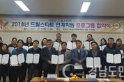 (거창/최병일) = 거창군(군수 양동인) 드림스타트는 7일 거창군종합사회복지관에서 이스턴브릿지어학원 등 관내 26개 학원대표가 참석한 가운데 학원연계 프로그램 추진을 위한 업무협약식을 가졌다. 거창군 드림스타트는 2011년 개소해 0세부터 12세 취약계층 아동과 가족에 대해 통합사례관리, 지역사회자원을 활용한 각종 서비스 연계 등을 추진하고 있다. 이번 협약은 드림스타트 대상 아동에게 학습능력 증진 및 예체능 관련 재능개발 기회를 제공하기 위해 마련됐다. 협약에 따라 드림스타트 아동의 학원비를 학원에서 40%를 후원하고 드림스타트에서 40%를 지원을 받음으로써 학원비로 인한 경제적 부담을 덜게 됐다. 거창군 드림스타트 관계자는 "이번 협약을 통해 지역자원 연계 프로그램을 더욱 활성화해 아동들에게 공평한 배움의 기회를 제공하고, 아동들이 꿈을 꾸고 그 꿈이 이루어 질 수 있는 세상으로 한걸음 나아갈 수 있도록 지원할 것"이라고 말했다.
