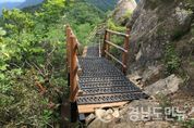(거창/최병일) = 거창군(군수 양동인)은 관내 생활권과 주요 명산 등 8개소의 등산로 6km를 정비해여 군민과 등산객들로부터 큰 호응을 얻고 있다. 등산로 정비사업은 건강에 대한 관심이 높아지면서 등산인구가 급속히 증가함에 따라 거창의 명산을 찾는 등산객의 안전사고 예방과 쾌적한 등산 환경조성을 위해 추진됐다. 거창군은 올해 총 6억 원의 예산을 들여 생활권 등산로인 건흥산, 망실봉, 금귀봉에 의자 등 편의시설과 체육시설을 정비했다. 천년고찰인 고견사를 경유하는 별유산 등산로, 철쭉 군락지인 마장재 등의등산로에 데크 시설을 정비해 쾌적하고 안전한 등산 환경을 조성했다. 거창 항노화 힐링랜드 조성지와 맥을 같이하는 우두산, 의상봉, 장군봉, 비계산의 암릉구간에 데크를 설치하고, 급경사지 안전로프와 목계단을 설치·정비함으로써 안전사고의 위험성을 크게 줄였다. 항노화힐링랜드 일원의 등산로 조성을 통해 위험한 등산로를 정비했다. 내년에는 등산객 유치를 위해 조성중인 전국 최초 Y자형 출렁다리(120M)와 연계되면 관광객 유치 촉매 역할로 지역경제 활성화에 크게 기여할 것으로 기대하고 있다. 거창군은 2018년도 등산로 정비사업을 위해 총 5억 원의