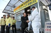 (거창/최병일) = 지난 19일 전북 고창 소재 육용오리농가에서의 고병원성 AI(H5N6형) 확진과 AI 위기경보의 현행 주의단계에서 심각단계로 상향 조정됨에 따라 양동인 거창군수는 외부에서 거창군으로 유입되는 축산차량에 대해 세척·소독을 하고 있는 방역 현장을 방문해 방역 추진상황을 점검하고 현장 근무자들을 격려했다. 거창군으로 유입되는 축산차량에 대한 현장 방역활동에 참여하고 있는 방역초소 현장 근무자들의 노고를 치하하면서 소규모 가금농가 및 가금거래상인 등 취약농가에 대한 방역관리 강화, AI 의심축 신고시 초동방역 조치 만전으로 확산 방지, 가금전담 공무원을 통한 가금농가 일일예찰 및 개별농가 단위의 차단방역 강화 등 선제적이고도 꼼꼼한 방역 조치에 만전을 기하여 줄 것을 당부했다. 거창군에서는 외부에서 유입되는 모든 축산관련차량에 대한 소독필증 휴대제 추진, 방역대책 상황실 24시간 운영, 가금농가 및 계열업체 책임방역 관리제, AI 사전 검사 및 이동승인서 휴대제, 차량 GPS를 통한 축산차량 출입 및 소독 관리 등을 통해 방역 취약점을 지속적으로 보완하고 생산자단체 등과 긴밀한 협조체계로 AI 청정지역 유지를 위해 대처하고 있다.