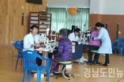 (거창/최병일) = 거창군(군수 양동인)은 지난 7일 한국실명예방재단에서 주관한 어르신 무료 눈(眼)검진을 고제면 고제문화체육회관에서 진행했다고 8일 밝혔다. 이번 검진은 거창군보건소에서 한국실명예방재단에 어르신 무료 눈(眼)검진 사업을 신청해 이뤄진 것이다. 안과의사와 의료진 6명이 고제면 주민 200여 명을 대상으로 시력측정, 안압검사, 굴절검사, 세극등현미경 검사 등 안과에서 실시하는 검진을 했다. 검진 결과 안과적 질환 백내장, 망막증, 녹내장에 대해선 소득 기준을 검토해 초음파 검진비, 사전 진료비, 수술비 등을 재단에서 무료로 지원해 밝고 환한 세상을 열어줄 예정이다. 검진에 참여한 주민에게는 일상생활에서 필요한 의약품을 지급해 주민들로부터 좋은 호응을 받았다. 이번 검진에서 11명의 백내장 의심질환자를 발견했으며, 빠른 시일 내에 안과에 방문해 진료를 받을 수 있도록 안내했다. 오른쪽 눈에 대한 백내장이 의심된다는 진단을 받은 한 주민은 “평소 짙은 안개 속을 걷는 것처럼 눈앞이 뿌옇게 보였는데, 안과 전문의의 친절한 상담과 좋은 장비로 정확한 병명을 알게 됐다. 재단에서 병원비, 입원비까지 지원해준다고 하니 어려운 형편에 너무 감사