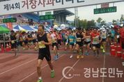 (거창/최병일) = 거창군(군수 양동인)이 주최하고 거창군체육회가 주관한 제14회 거창사과마라톤대회가 지난 15일 거창군스포츠파크와 주상면 일원에서 열렸다. 이날 양동인 군수, 강석진 국회의원을 비롯한 조선제, 안철우 도의원, 김종두 군의회의장, 군의원, 기관 단체장, 선수와 가족, 동호인 등 2,800여 명이 참가한 가운데 성황리에 개최됐다. 대회시작을 알리는 식전행사로 스포츠댄스공연, 몸풀기 스트레칭이 펼쳐졌으며, 오전 10시 하프코스 참가자의 출발을 시작으로 10km, 5km 출전자들이 폭죽소리와 함께 힘차게 달려나가며 대회가 진행됐다. 특히 양동인 군수는 마라톤 10km 코스에 직접 참가해 참가자들과 함께 호흡하며 땀을 흘렸다. 권민호 거제시장이 5km 종목에 참가해 대회를 빛냈다. 한편 이번 대회는 거창한마당 축제 마직막 날 행사로 진행됐다. 다문화, 농산물한마당, 향토음식체험관 등 다양한 체험부스와 전국 최고의 과일로 자리매김한 거창사과를 기념품으로 나눠주고 돼지고기, 막걸리, 두부김치 등 풍부한 먹거리를 제공해 거창의 인심을 보여줬다. 양동인 군수는 “선선한 가을 날씨 속에서 열린 이번 대회를 통해 잠시나마 바쁜 일상에서 벗어나 가을