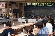 (거창/최병일) = (재)거창문화재단(이사장 양동인)은 지난 21일 거창군청 대회의실에서 재단이사장 양동인 거창군수와 군간부 공무원, 거창문화재단 이ㆍ감사, 유관기관, 대행사 직원 등 60여 명이 참석한 가운데 2017 거창한마당 대축제 운영 대행 용역 착수보고회를 열었다. 이번 보고회는 오는 10월 12일부터 15일까지 거창스포츠파크 등 거창군 일원에서 열리는 2017 거창한마당 대축제의 종합개요와 주요일정, 축제장 구성 및 세부추진계획에 대한 구체적인 설명과 함께 질의응답 순으로 진행됐다. 올해 눈에 띄는 내용은 거창1교 강변의 워터스크린 라이팅쇼, 열기구 행글라이더 등의 각종 체험프로그램을 보강한 새로운 축제 콘텐츠를 선보여 군민과 관람객의 만족도를 높여 줄 것으로 기대된다. 이날 다수 의견으로 논의된 디자인 통일방안, 거리퍼레이드 참여 확대, 한마당 소원등 설치 방안에 대해서는 보완해 축제에 반영키로 결정했다. 양동인 군수는 종합강평을 통해 “착수 보고회에서 나온 의견을 수렴해 거창한마당 대축제가 군민 모두가 화합하고 신나게 즐길 수 있는 성공적인 축제가 될 수 있도록 최선을 다해달라”고 당부했다. 이번 축제는 거리퍼레이